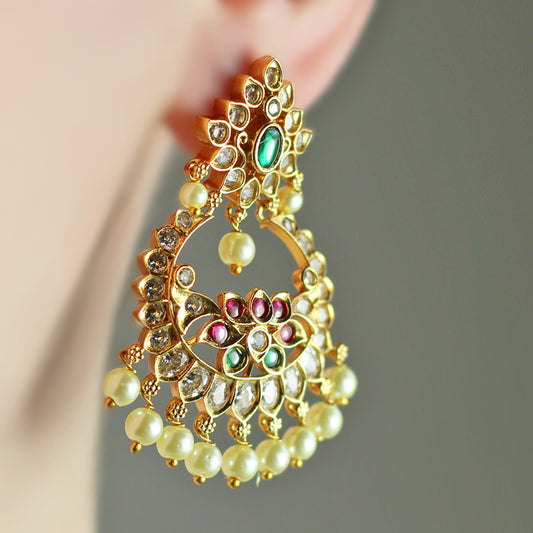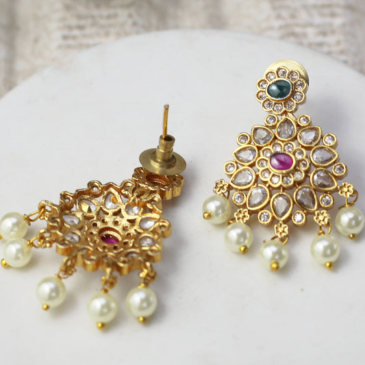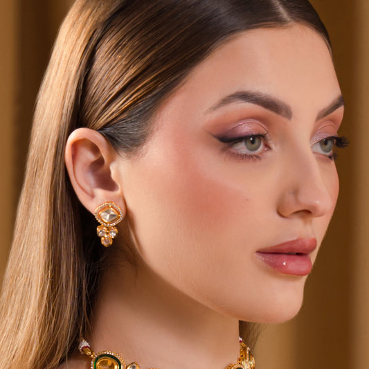 Gold Kundan Statement Drop Earring