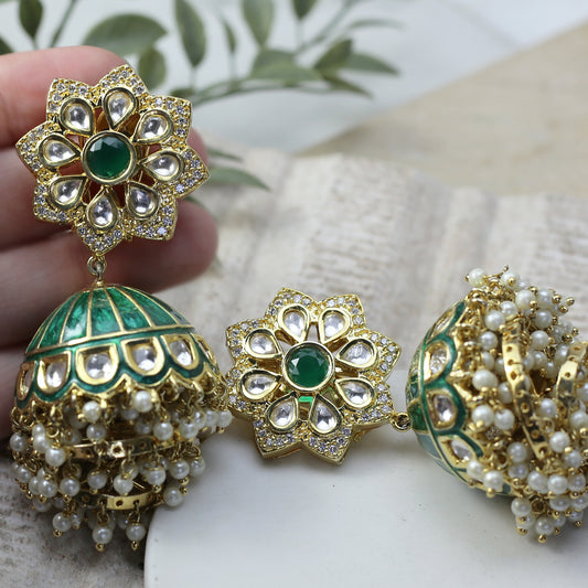 Green Statement Drop Jhumke I Earring