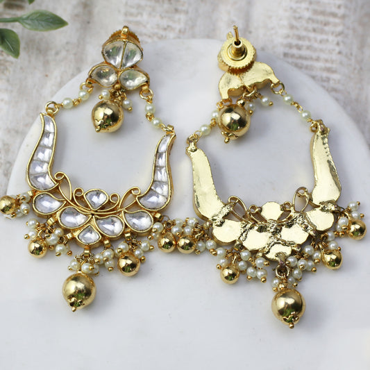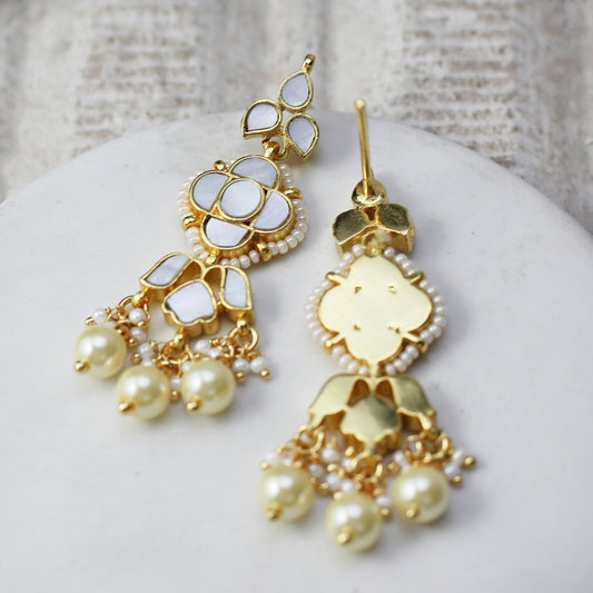 White Kundan Drop Earring