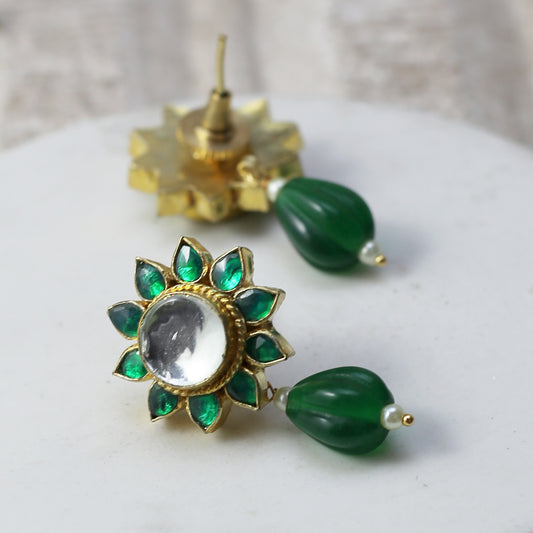Green Kundan Flower Drop Earring