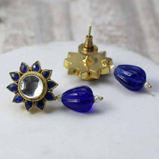 Blue Kundan Flower Drop Earring