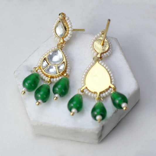 Green Kundan Drop Earring
