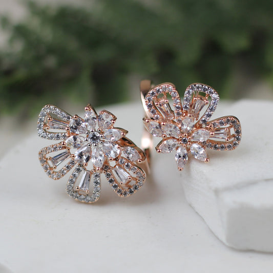 Floral Rose Gold Double Ring - Adjustable