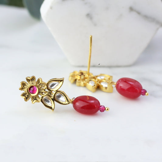 Red Flower Drop Earring